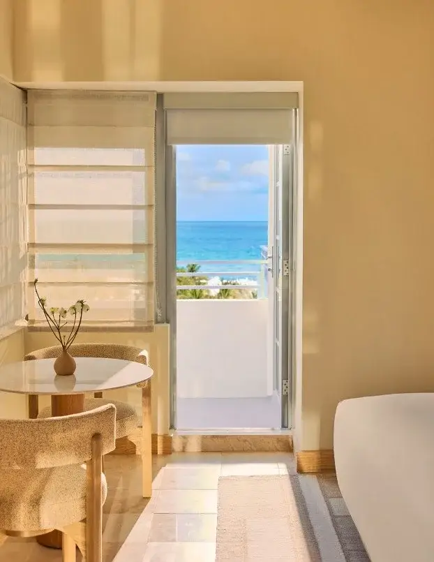 Set directly on the oceanfront in the heart of Miami Beach, the property balances mid-century design heritage with a distinctly modern Miami sensibility—think sculptural lines, textured materials, and sun-washed interiors that feel both sophisticated and relaxed. Days revolve around the palm-framed pool deck and effortless beach access just steps away, while evenings bring seasonal coastal menus and lively yet polished energy.